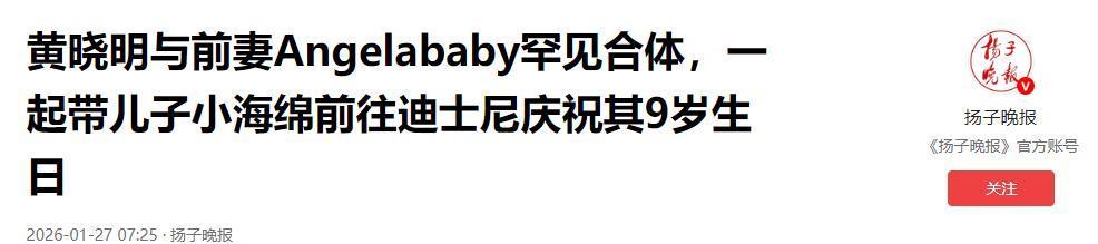 2026年1月25日,有网友在上海迪士尼乐园偶遇了黄晓明和杨颖,两人罕见合体,只为陪9岁的儿子小海绵庆祝生日。