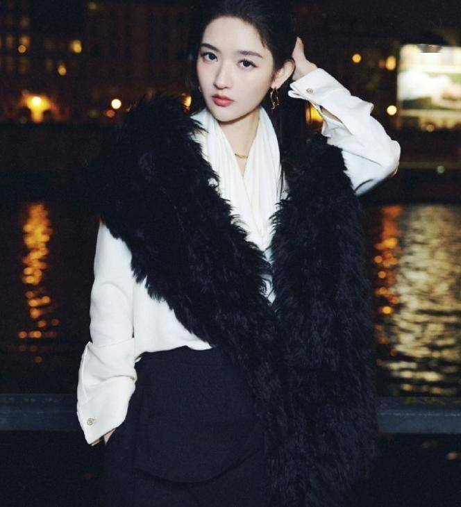 她选了黑白极简风造型,外面搭件黑色毛绒披肩,长卷发垂在肩头,又美又干练的样子很是吸睛 —— 可惜生图里有点眼肿,被网友调侃 “怕不是倒时差没睡好”。