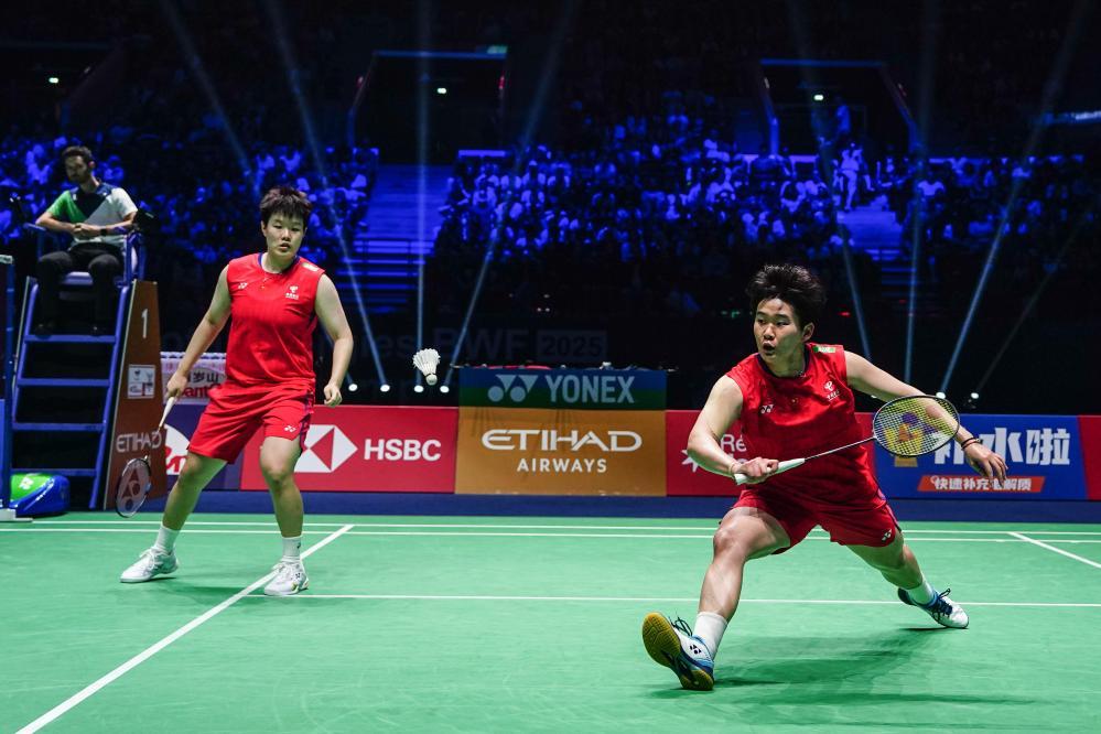 女双决赛中,21岁的刘圣书和22岁的谭宁作为头号种子迎战2号种子、马来西亚组合陈康乐/蒂娜。开局后双方均打出犀利进攻,“圣坛”组合顽强防守的同时,配合更加细腻流畅,以21:14拿下首局。