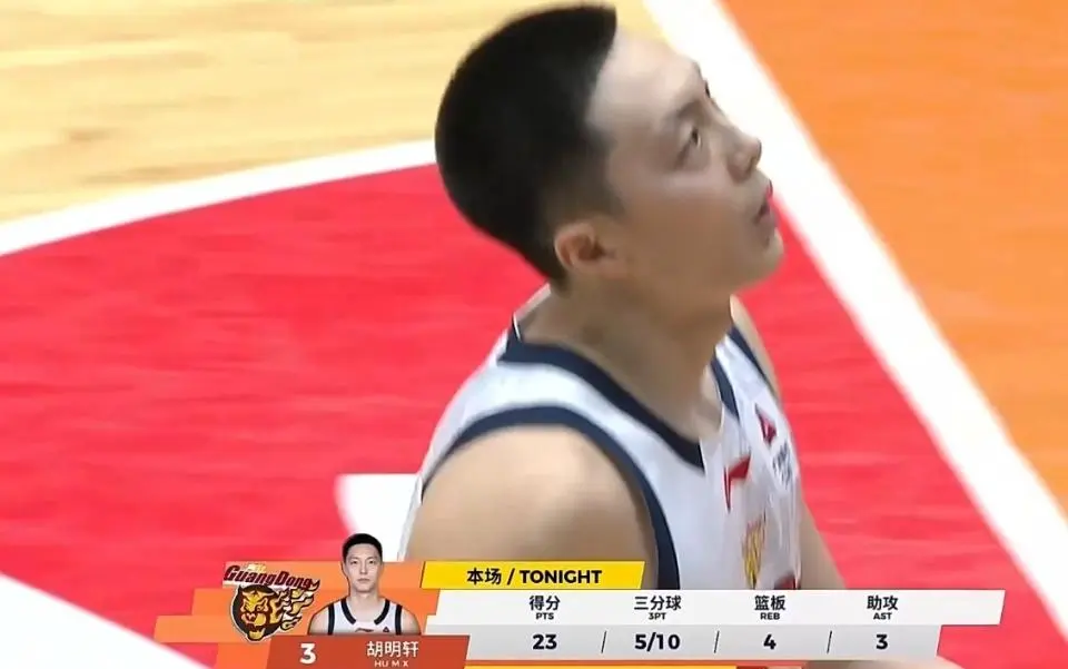 本场比赛的14分也是胡明轩过去5场比赛连续得分上双,而上一场面对四川的比赛,胡明轩攻下26分创造新赛季表现最佳一战。