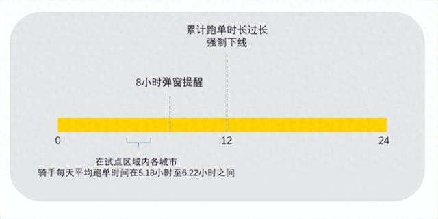 试点数据为骑手防疲劳机制优化提供了依据。美团披露,华东四省市(江浙沪闽)试点期间,仅0.18%的骑手因连续跑单触发强制下线条款,99.82%骑手正常跑单不受影响。各城市骑手日均跑单时长集中在5.18至6.22小时,远低于强制门槛。值得注意的是,约20%骑手在跑满8小时后收到过弹窗提醒,说明平台干预集中于预防性提示。